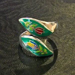VINTAGE Enamel Floral Inlay Bypass Ring