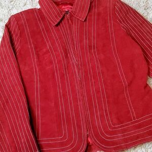VINTAGE TERRY LEWIS CLASSIC LUXURIES RED LEATHER ZIP-UP JACKET