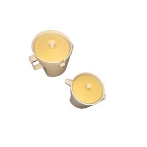 VINTAGE TUPPERWARE CREAMER #1414-5 & SUGAR #1415-6, BEIGE W/HARVEST GOLD LIDS!.