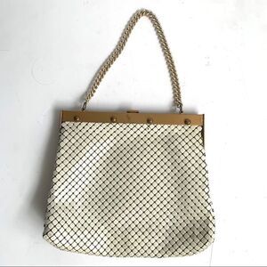 Gorgeous, very rare. Pearl off white in color. Snap entry. Made in USA. Some wear and tear. Gold rubbed in some areas. Vintage condition. Some discoloration but lots of use left. You will love it! Approx measurements L=11.5” W=2.5” H=10.5” drop=7”