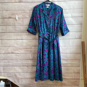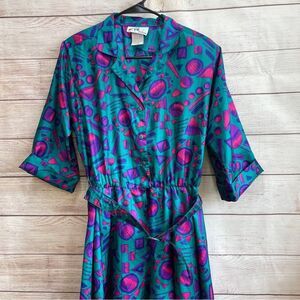 EXCELLENT CONDITION VINTAGE WILLI OF CALIFORNIA ABSTRACT PRINT MIDI DRESS