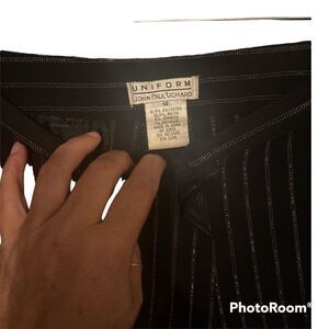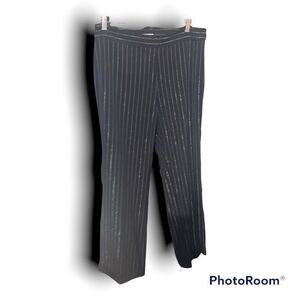 OMG! Even though I don’t have to dress for the office, if these still fit all that junk I got now, I wouldn’t be selling!! Excellent preloved condition, just normal wear, these are fire for date night, and completely appropriate for the office as well! Black, wide leg, cuffed hem, with silver metallic and burgundy/red pinstripes in the stretchiest, most comfortable fabric ever! You will LOVE these pants!