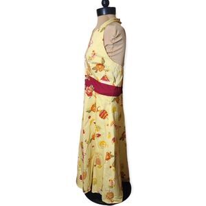 VINTAGE Yellow Halter Floral and Cocktail Print Dress