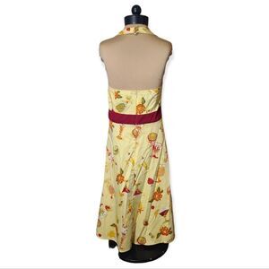 VINTAGE Yellow Halter Flotql and Cocktail Drink Print Dress Size 14