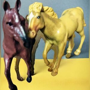 This adorable set of horse figurines will make a perfect addition to your collection, or a unique gift for the horse lover in your life. They are sure to bring a touch of charm and nostalgia to any space. Crafted from durable rubber, these vintage horse figurines have stood the test of time and are ready for a new home
