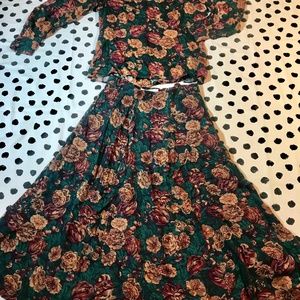 VINTANGE Floral 80's 2pc Skirt & Blouse Set/ Dress