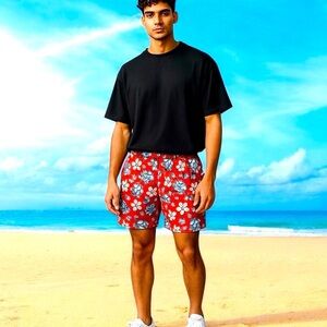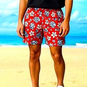 VINYARD VINES MEN’S SWIM SHORTS Floral Red Large Like New Drawstring Waistband
