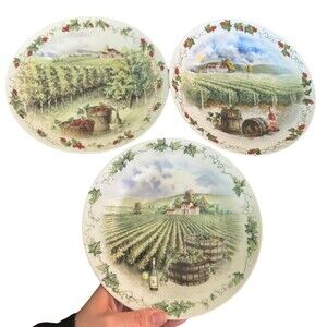 VINYARD VINES WINE And BARREL COUNTRY EMBOSSED DECORATIVE 8" PLATES 3 Piece Set