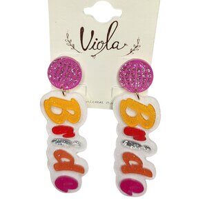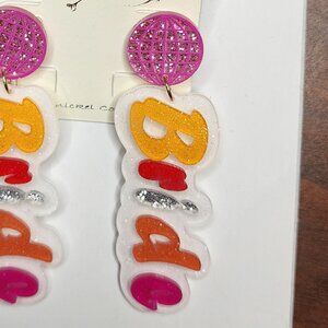 VIOLA Acrylic Multicolor Disco Bride Statement Earrings NWT