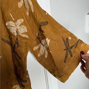 VIOLA BORGHI Linen Dragon Fly Print Pullover 3/4 Sleeve Top Italy Women’s S BOHO
