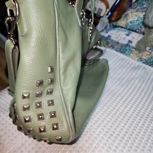 Viola Castellani Made in Italy Gray Leather Shoulder Bag Purse Studs Footed VGUC.