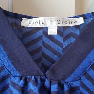 VIOLET & CLAIRE CHEVRON ZIG ZAG TUNIC LONG TOP ROYAL NAVY BLUE SIZE LARGE V-NECK