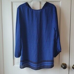VIOLET CLAIRE CHEVRON ZIG ZAG POPOVER TUNIC TOP BLUE SIZE LARGE