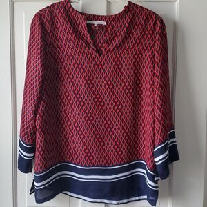VIOLET + CLAIRE RED WHITE BLUE TUNIC TOP BLUE MEDIUM GEOMETRIC NAUTICAL PATRIOT