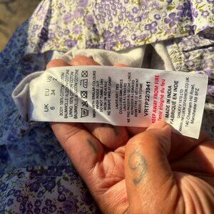 Labelled UK size 6, Euro 34, US 2. Measurements are bust 34", length neck to hem 16'.