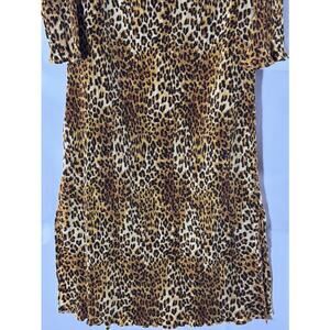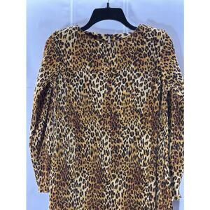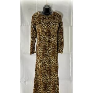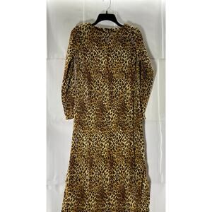 VIOLET ROMANCE Women's Brown Multi Leopard Print Plisse Crewneck Long Sleeve Midi Dress SZ 12