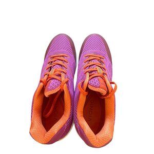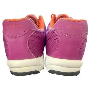 These sneakers are bio mechanically engineered to hug your arches, which supports natural alignment. If you want happy feet, I'd recommend these bionic sneakers. I just love all my Vionic shoes and my friends do too! These are in like new condition, no wear anywhere on them. These shoes feature sporty mesh lace up walking shoes. Man made uppers, firm yet flexible removable microfiber covered EVA orthotic inserts. Durable rubber out soles. Orthoheel heel technology. A gorgeous fuschia with orange piping.