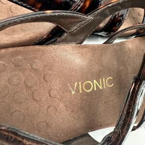 VIONIC Amber Brown Tortoise Shell Adjustable Strappy Sandals // 6