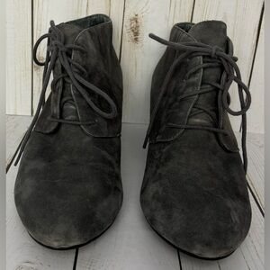 VIONIC BECCA GRAY SUEDE LEATHER ANKLE HEELED WEDGE BOOTS SZ 9