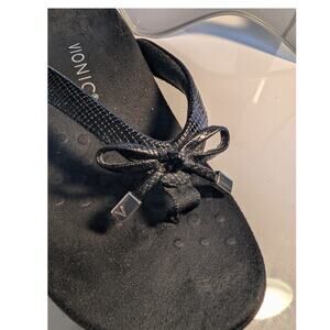 VIONIC Bella Toe Post Flip Flop Sandals with Bow Black Lizard Reptile Women's 7