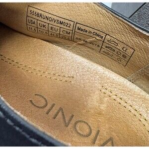 The VIONIC Bruno Mens Black Dapper Leather Wingtip Lace Up Shoes in size 11.5 are a stylish and sophisticated choice for any special occasion. These oxford-style dress shoes feature an almond toe, wingtip design, and leather lining for added comfort and durability. Perfect for going out, weddings, or city events, these shoes exude a preppy and dapper vibe while providing a standard shoe width for a tailored fit. Made from quality leather and boasting a solid black color, these shoes are sure to make a statement in any well-groomed gentleman's wardrobe. These were shoe displays so there is some light scuffing.