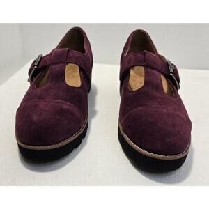 VIONIC Carmen Mary Jane Loafer Shoes Size 6 Wine Suede Comfort T Strap