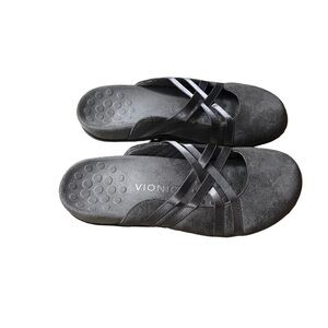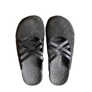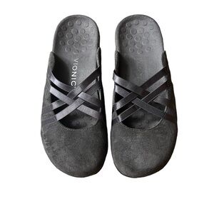 VIONIC Claire Charcoal Gray Suede Slip On Strappy Crisscross Strap Mules Size 8