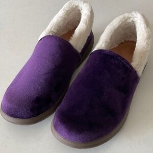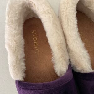 VIONIC Clare Velvet Cozy Collar Faux Fur Slipper Purple Size 10 Like New