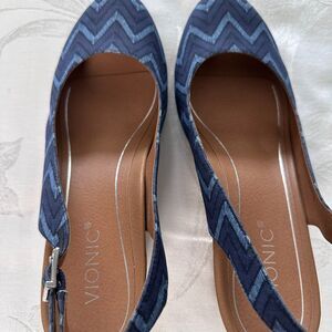 VIONIC Coralina Chevron Women Sandal Size (11) Slingback Wedge Espadrille