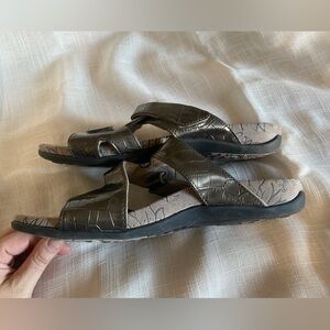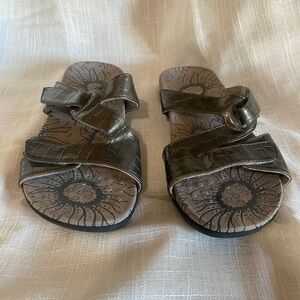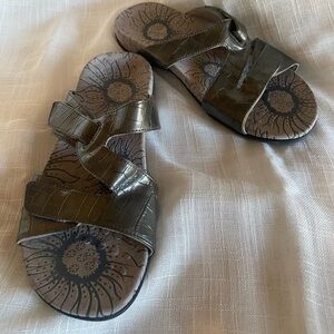 VIONIC LAUREN Silver Patent Croc TVW4046 Orthaheel Slide Sandal Womens Sz 9 Wide