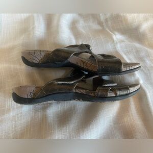 Hook and loop closure, some tread wear, comfort, walking, vacation, metallic