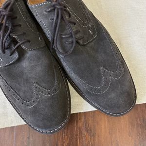 VIONIC Mens Bruno Wingtip Oxford Derby Shoes Lace Up in Suede Gray US 11 EU 44