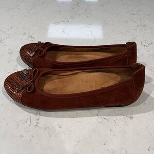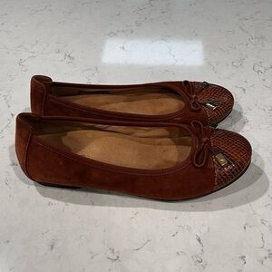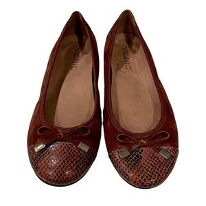 VIONIC Minna Brown Suede Snake Print Cap Toe Ballet Flat Size 6