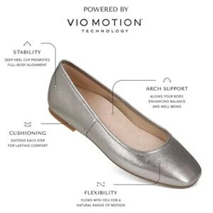 VIONIC ORINDA PEWTER SILVER METALLIC SQUARE TOE BALLET FLATS