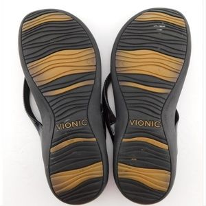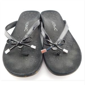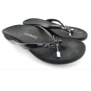 VIONIC ORTHAHEEL Black Patent Bow thong Sandals 6
