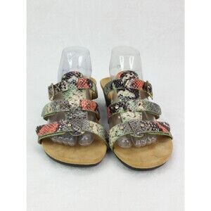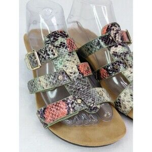 VIONIC Radia Orthotic Wedge Adjustable 3 Strap Snakeskin Embossed Sandals Size 8