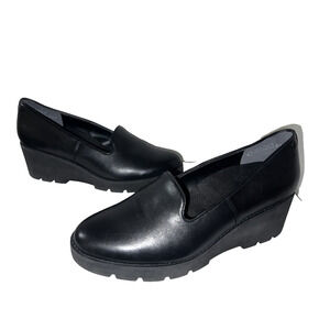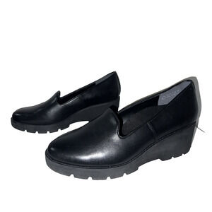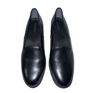 VIONIC Shoes Women's Size 10 Black Leather Slip On Round Toe Willa Wedge Loafer