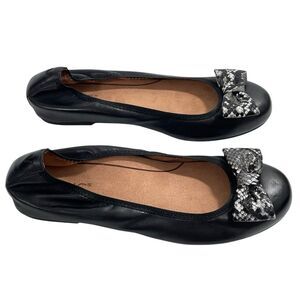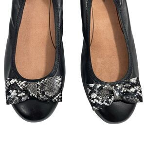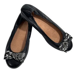 VIONIC Spark Zelda Black Leather Ballet Flats Shoes Snake Print Bow SlipOn 8.5W