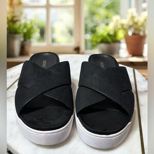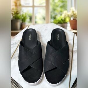 VIONIC Splendid Lou Black Leather Suede Slide Sandals Size 8 EU 39