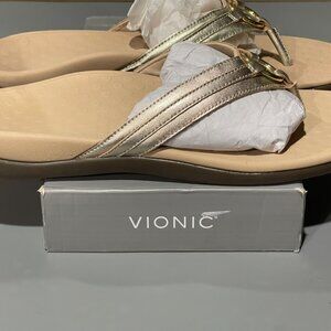 VIONIC Tide Aloe Toe Post Sandal. Champagne Leather color. Womens size 11.
