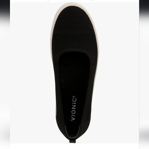 VIONIC WOMEN'S UPTOWN SKIMMER KNIT SLIP-ONS LOAFER SIZE 91/2 COLOR BLACK Sole material Rubber Outer material Leather Closure type Pull-On Footbed Removable microfiber wrapped EVA.Outer Material Fabric-Cow Perfectly packable, this knit slip-on offers all day comfort with supportive footbed contours and ultra-flex sole. Uptown Skimmer is ready to explore. Designed with exclusive alignment technology to balance the whole you. Premium upper materials. Deconstructed to collapse flat. A lightweight flexible outsole that's durable designed to withstand everyday wear. EVA midsole absorbs shock, reducing stress on feet, ankles, and knees. Lightweight, flexible EVA midsole absorbs shock, reducing stress on feet, ankles, and knees. Built-in VIO MOTION Technology footbed featuring contoured arch support, with shock absorbing cushioning, deep heel cup to provide stability and forefoot flexibility. For optimal comfort, wear your new Vionic shoes for a few hours to let your feet adapt. Within 1-2 weeks, you should experience full orthotic comfort and support. .625 inch(es) heel height. THIS ITEMS IS PRE-OWNED EXCELLENT CONDITION WITH ONLY LIGHT SIGNS OF WEAR IF ANY CHECK THE PICTURES