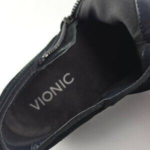 Excellent pre-owned condition, VIONIC Women's Joy Serena black suede ankle boots with side zip and arch support, size 8M.