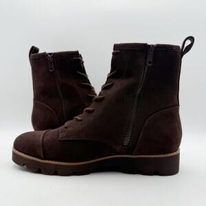 VIONIC Womens Lani ll Combat Boot US 8 Wide Brown Suede Water Repellent NWOB