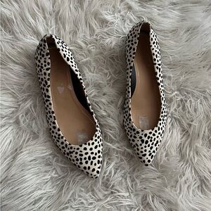 Vionic, black and white velvet quartz Lena spot pointed toe flats. These cute shoes have a velvet feel to them. Black and cream animal print or polkadot design. Super comfortable with orthotic insoles. These shoes are perfect for any wardrobe, classic black and cream with fun design add interest to your outfit.