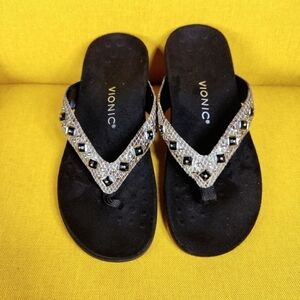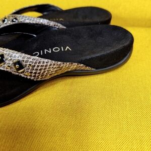 VIONIC Women's Rest Floriana Grey Snake Orthotic Flip Flop Thong Sandals Size 8
