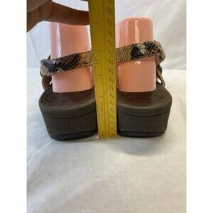 The VIONIC Women's PACIFIC BOLINAS Slingback Wedge Sandals in Size 11 feature a stylish animal print snake pattern in beige/multi colors. These casual sandals have a hook & loop closure for easy adjustment, a 2-inch heel, and arch support for comfort. Designed for summer and spring seasons, these synthetic upper sandals with rubber outsoles are perfect for women looking for a fashionable and comfortable footwear option. The slingback style and adjustable strap add to the overall appeal of these Vionic sandals, making them a versatile choice for any casual occasion.