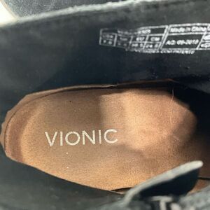 Women’s Vionic black suede leather ankle boots with inside zippers and 1 1/2” heel. EUC Size 7 1/2