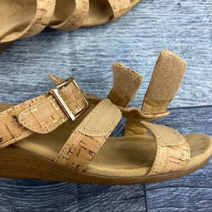 VIONIC RADIA CORK Wedge Sandals Slides Slip On Adjustable Straps Buckle Womens 9