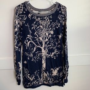 VIP Blue & Cream Tree Design Crewneck Sweater