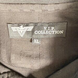 VIP Collection Men's Embossed Geometric Pattern Black Polo XL Luxury Greek Key